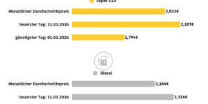 München (ots) – Die Kraftstoffpreise sind im März 2026 massiv gestiegen. Wie die aktuelle ADAC Auswertung der Kraftstoffpreise in Deutschland zeigt, kostete ein Liter Diesel im Monatsmittel 2,164 Euro – …